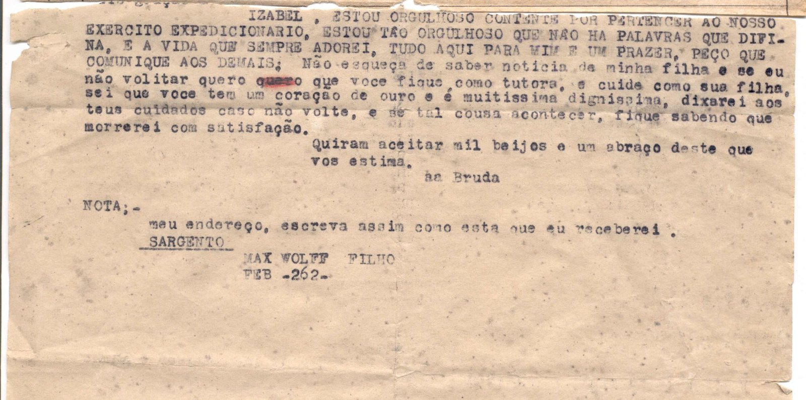 Bilhete de Max Wolff Filho para Izabel
