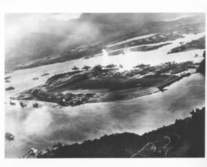 Fotografia japonesa capturada durante o ataque a Pearl Harbor, 7 de dezembro de 1941.