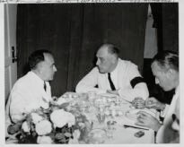 O Presidente Getúlio Vargas o Presidente Roosevelt em uma conferência a bordo de um contratorpedeiro dos EUA no porto do Rio.