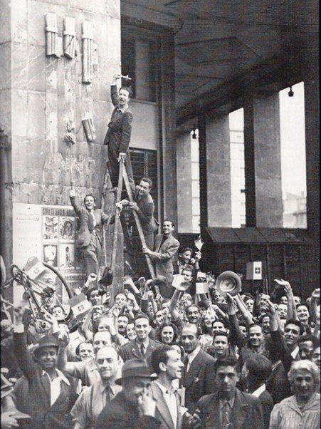 Após a queda de Mussolini, em 1943, o povo destruiu símbolos fascistas.